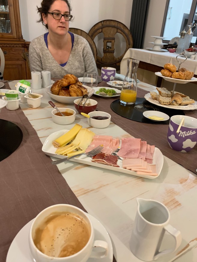Seeing haricots verts listed on the Salade Nicoise option, we try to order some for the veggie-deprived offspring. They’re tinned, we’re told. (Rural France 2019: so sad). But at least there are fresh tomatoes and lettuce available and the meal finally passes off peacefully enough, mainly because we gave in on the juice issue and let them have their fructose fix for dessert. At least we made an effort to avoid the children’s menu, which has a depressingly Auld Alliance feel to it: ie. as bad as most of them in Scotland (Burgers or nuggets, chips or beans, or chips AND beans. Here’s the ketchup, always keeps the weans happy.)