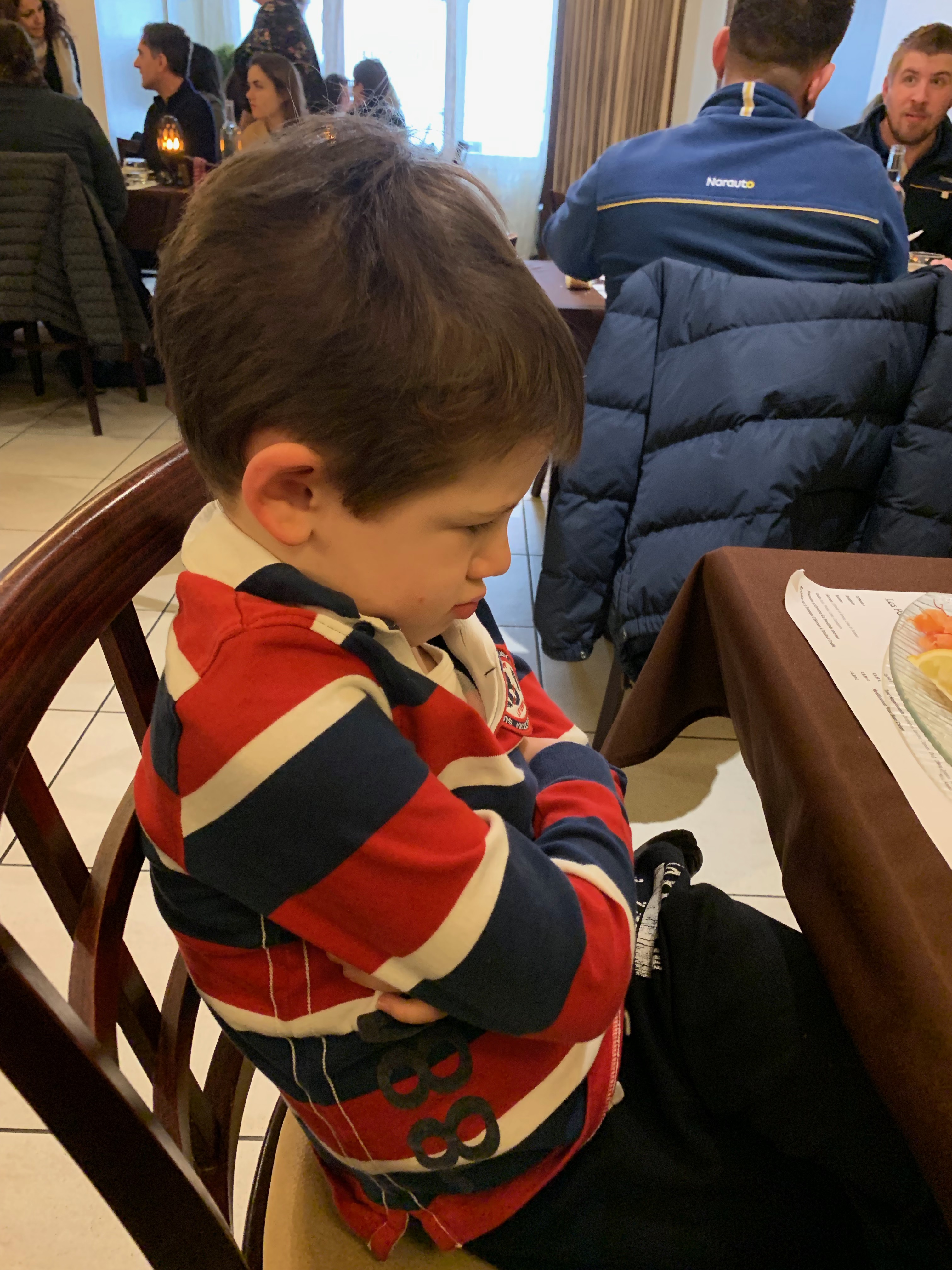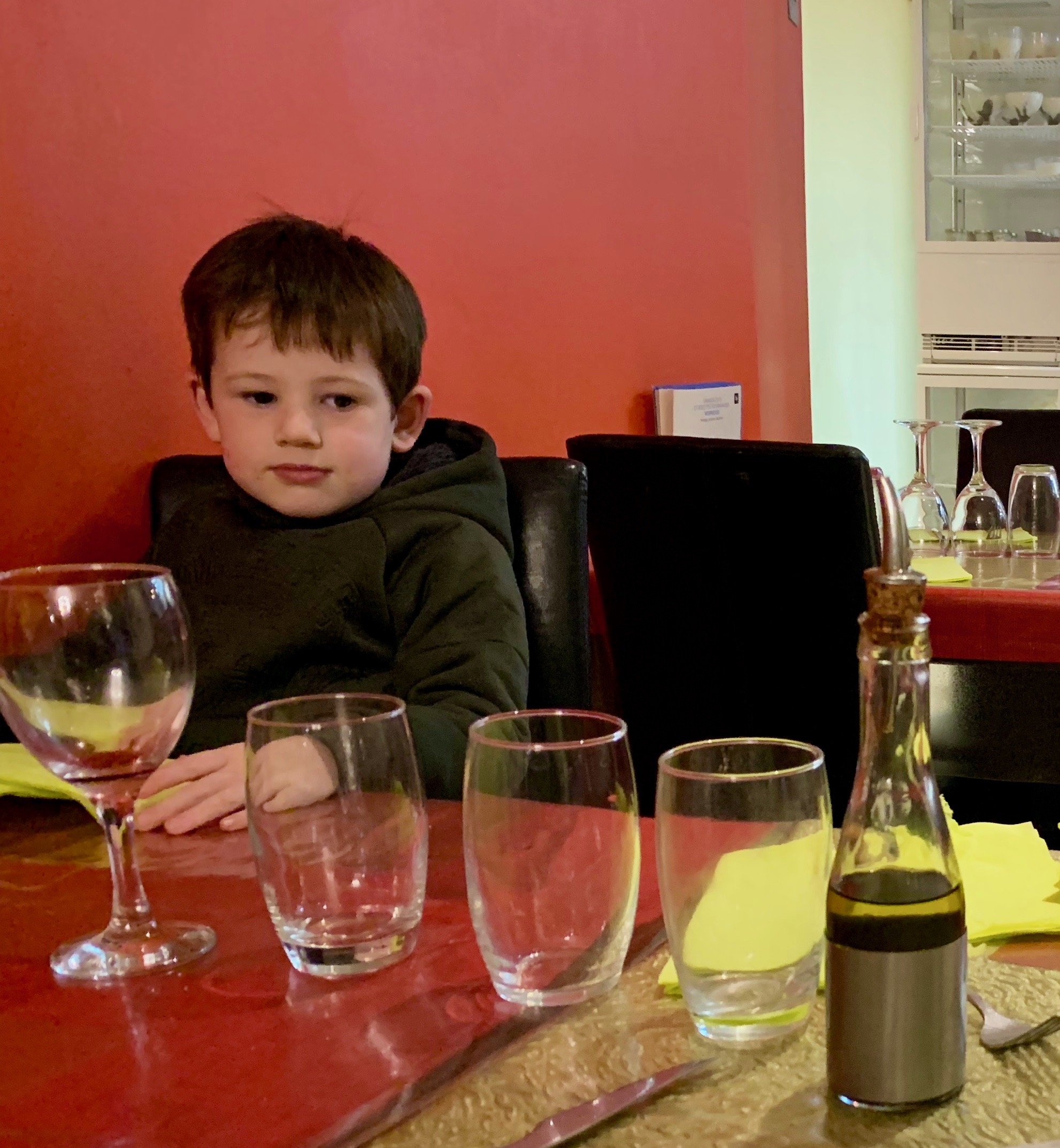 As a PS to today, I’ll add this picture. After his pizza, James was jumping around and sent a bottle of pizza oil flying. “Nothing broken”, he immediately announced with a cheeky smile, as if pre-empting being hauled over the coals. Hugh then proceeded to line up all the glasses on the table to show what the maximum impact of his brother’s Tomfoolery might have been, in the worst case scenario. Legal careers beckon – prosecution and defence respectively – for the pair of them. (I’m also willing to let them consider the arts ie. medicine or accountancy).