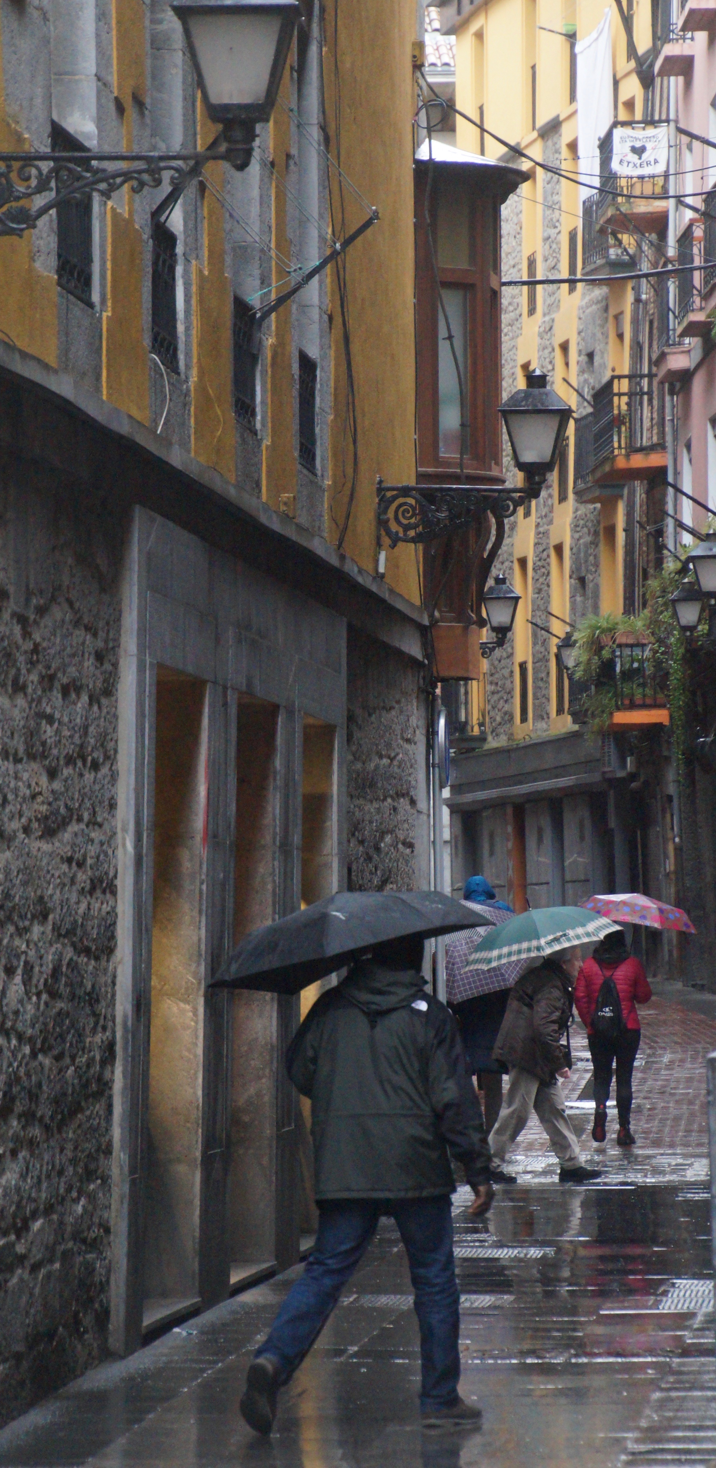 We’ll learn tomorrow if our limping Volvo’s woes are terminal or only financially ruinous. Meanwhile, it’s raining when we get to the town of Tolosa, and I’m reminded that the nice big National Trust umbrella we (obviously I mean I) bought last summer has disappeared. En route the unfamiliar SatNav in our rental replacement car kept crashing, we took some wrong turns and we nearly ran out of petrol. Now we can’t find anywhere to park. Even if I was really good at managing stress I’d be tetchy by now. And as explained in Part I, I didn’t start the day in tiptop form.