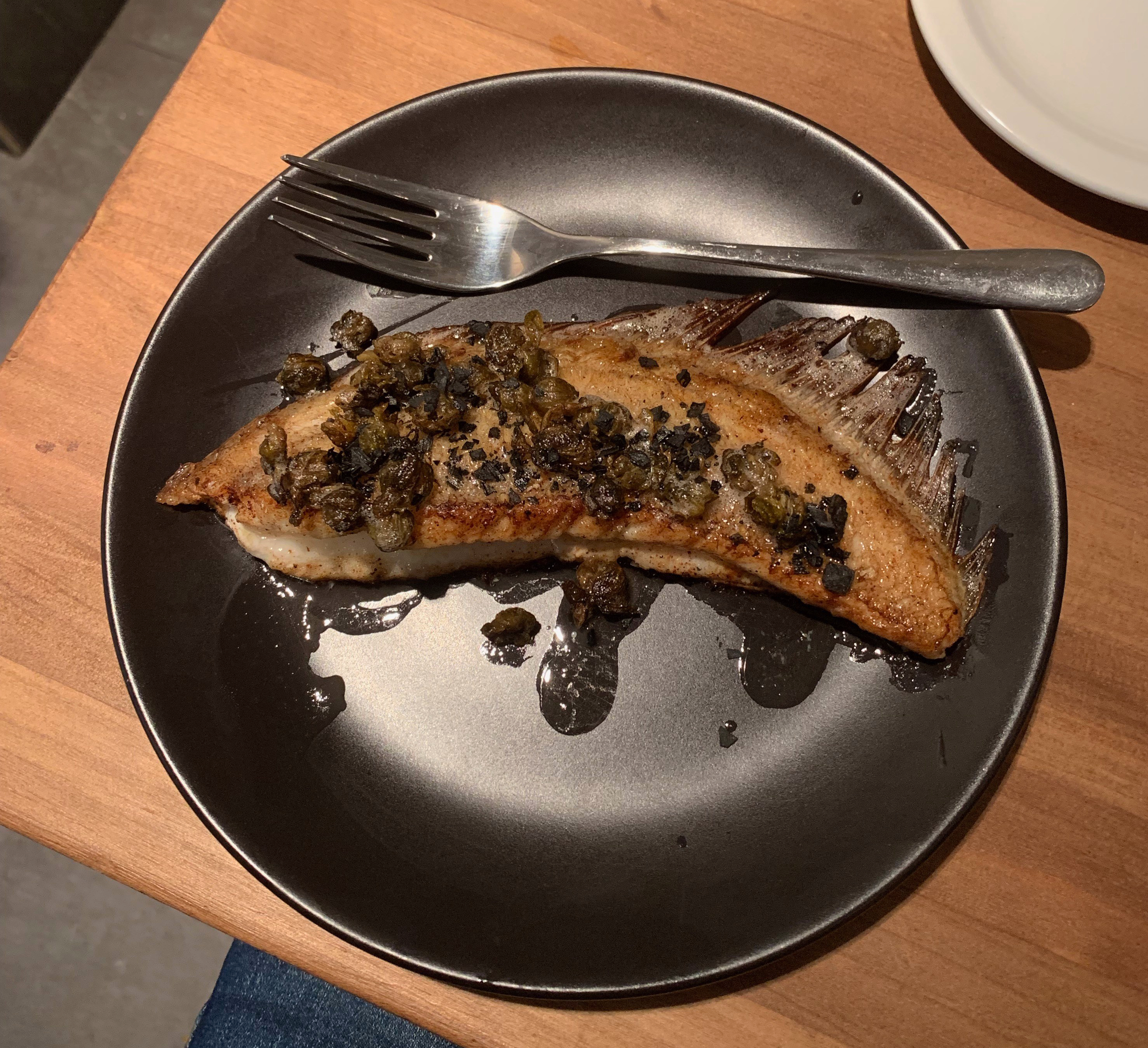 Everything was fantastic but two dishes stood out: the rice, which I neglected to snap, was a kind of tomato risotto infused with the most delicious prawn-y intensity, and the John Dory (also known as St Peter’s fish), was fried in butter with capers to a state of saintly scrumptiousness.