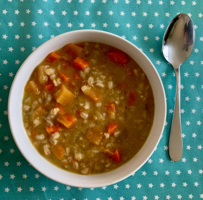 And when I came to think about it, I was surprised by how much of the range of Scottish fare I was brought up on has survived. I don’t know how representative we are, but, in the MacKinnon family at least, home-cooked lentil soup and Scotch broth, beef stew and butcher’s steak pies, clootie dumpling, scones and fruit loaf have all survived to co-exist alongside the new competition from pasta and pizza, chillis and curries, fajitas and felafel, takeaways and ready meals.