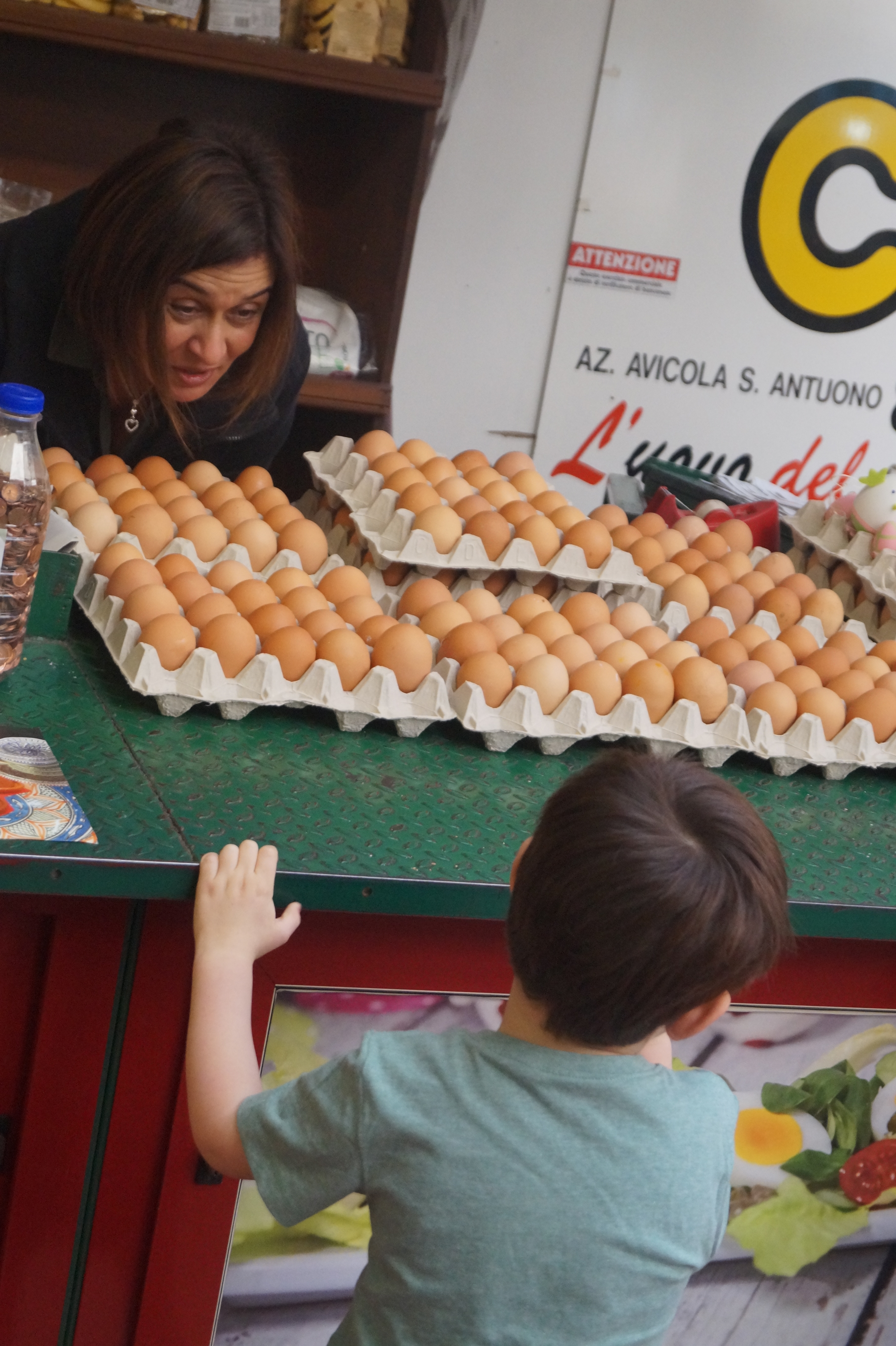 Good eggs are not hard to come by in Rome. Ours come from a stall in our local covered market, the Mercato Trieste, named for the nearby Corso Trieste. But all the local corner shops have very good quality eggs and grocers usually have a selection marked ‘da bere’ , literally, drinking eggs; fresh enough to eat, or drink, raw.