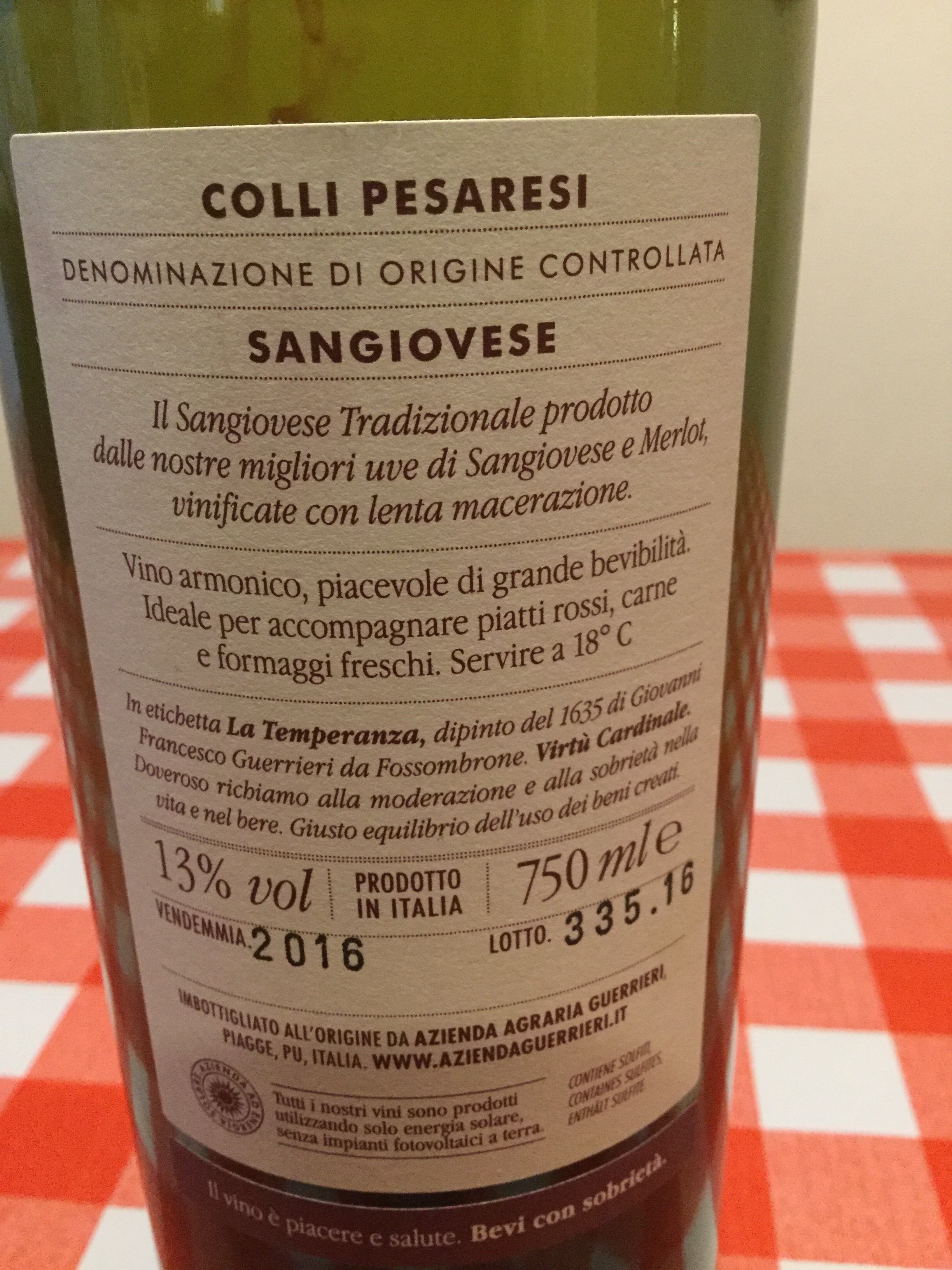 After discovering then writing about pecorino from the small Offida DOCG, I’ve been on the lookout for other interesting wines from the Italian region of Marche – the Marches as it used to be known in English, Les Marches in French.